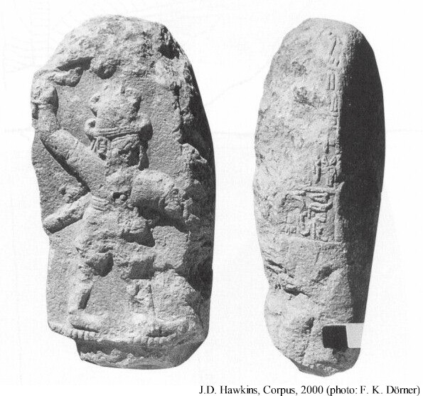 Daha küçük boyutlardaki diğer Fırtına tanrısı steli 72 cm yüksekliğinde 50 cm genişliğindedir. Bu stel de kireç taşından yapılmıştır. Burada Fırtına tanrısı tipik bir pozda baltalı sağ eli havada resmedilmiştir. Kısa tünik, boynuzlu sivri başlık ile daha eski bir stildedir ve tahminen 10. yüzyıla tarihlenebilir. Stelin sağ yan yuzeyinde kısmen korunmuş dört satırlık Luvice yazıtta Fırtına tanrısına ithaf ve yazan kişinin ismi mevcuttur.