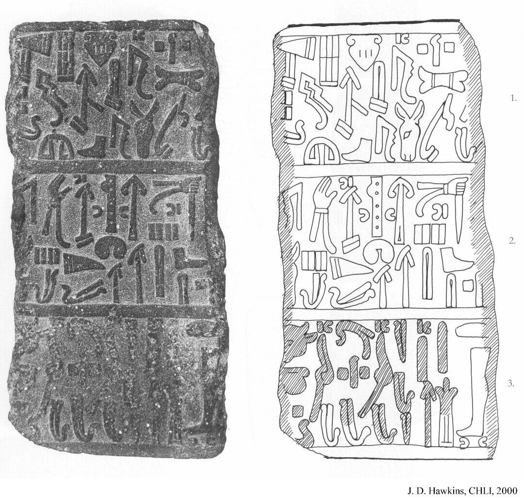 HOME - KARKAMIŞ TÜRKÇE Inscribed Fragment (ALEPPO 3) The inscribed basalt fragment was purchased in 1972 by the Syrian authorities in the region of the Euphrates and there is no other information about its provenance. However, the stylistic clues suggest the piece to originate from Karkamış. The fragment is 0.56 m high and 0.28 m wide. It bears parts of three lines of a Hieroglyphic Luwian inscription with unclear content and is approximately dated to the 8th century BCE. It is currently in the Aleppo Museum. ![]() |