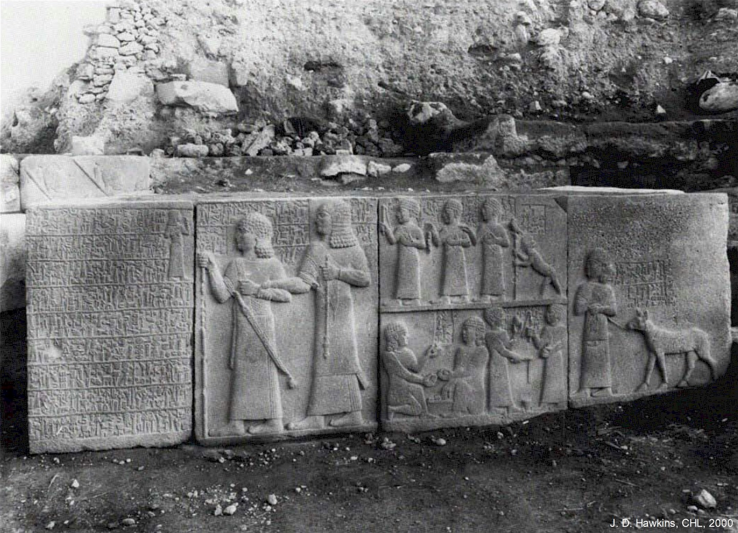 The front panel of the buttress is shown during the excavations. The top portion of the central figures (young princes) and the head of the regent, Yariri, have been damaged since then.