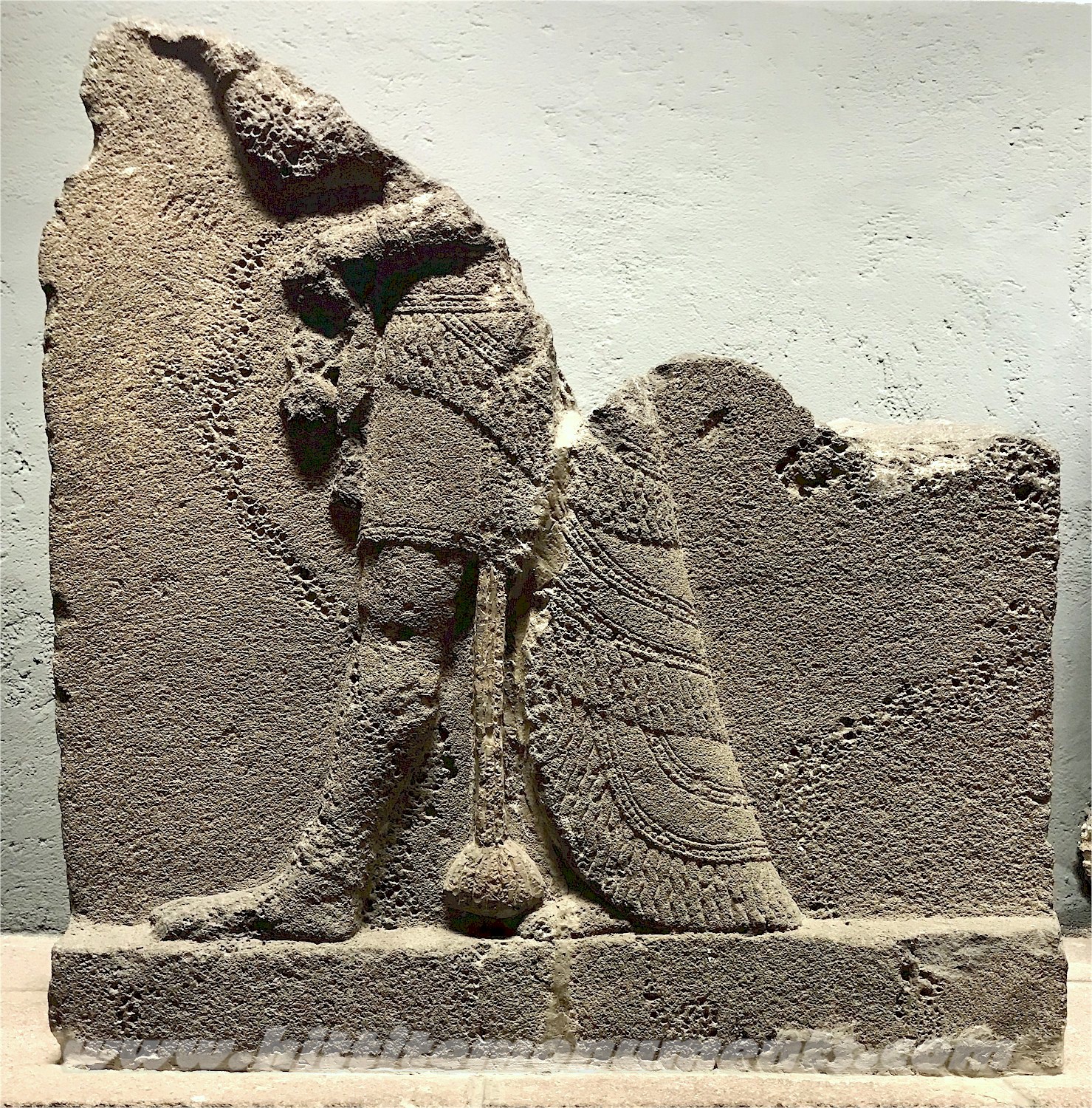 HOME - KARKAMIŞ TÜRKÇE Protective deity The basalt relief depicts a deity and belongs to an orthostat on the west wing of the Gatehouse at the top of the Great Staircase. The first image below, taken in 1884, shows the relief more or less complete. The top section has been destroyed subsequently, and the remaining parts are in the Anatolian Civilizations Museum in Ankara. Stylistically, it shows heavy Assyrian influence and has been dated to the late 8th century BCE. |