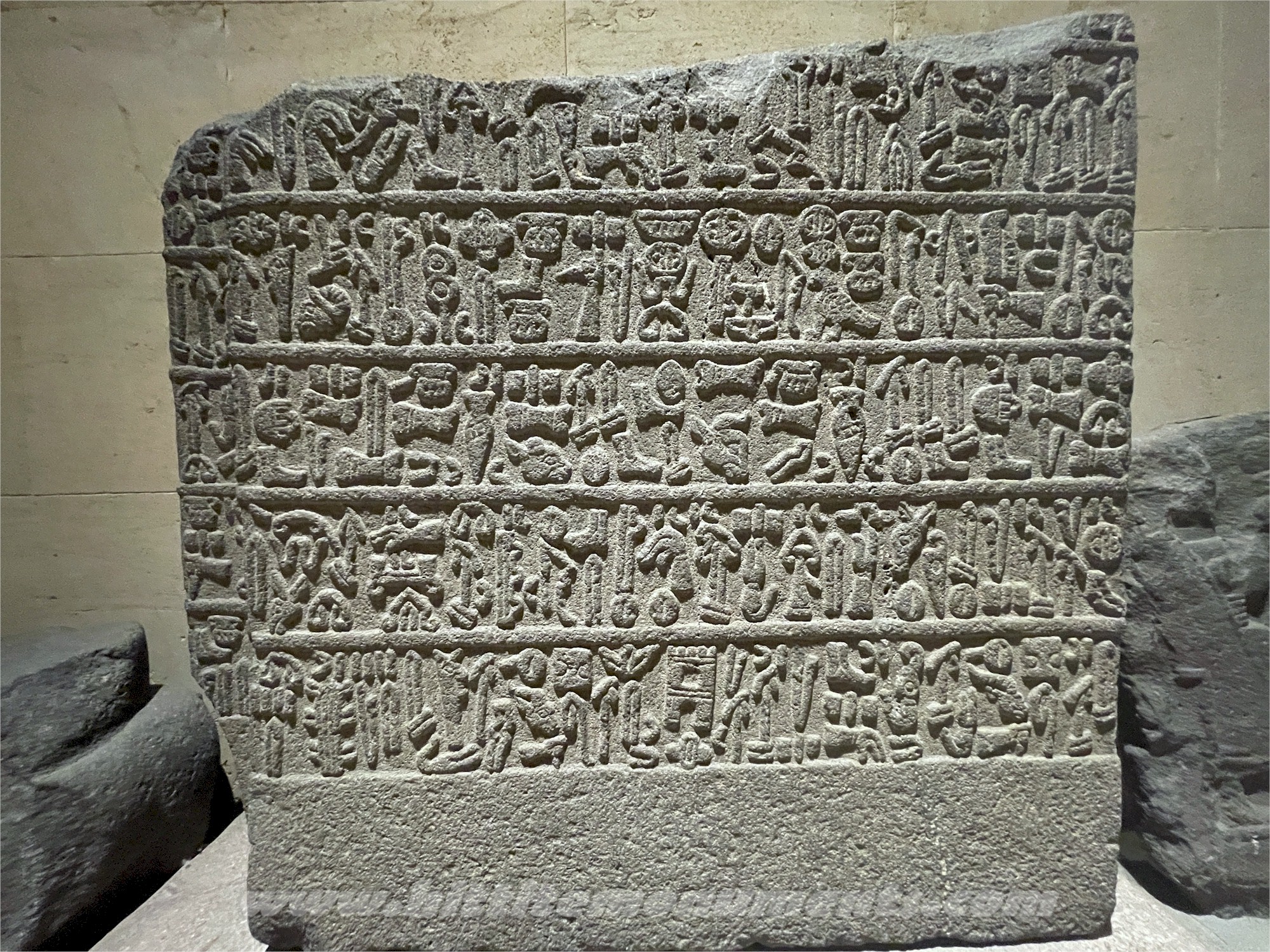 HOME - KARKAMIŢ TÜRKÇE Two inscribed basalt blocks were originally from a gateway but were found as reused, lying face down at the threshold of the King's Gate. The inscriptions on two blocks form a single text (KARKAMIŠ A11b+c), which belongs to ruler Katuwa and talks about a suppressed revolt in Karkamýţ, conquests, and the construction of "upper floors." Dates to the 10th-9th century BCE and is on display in the Anatolian Civilizations Museum in Ankara. |