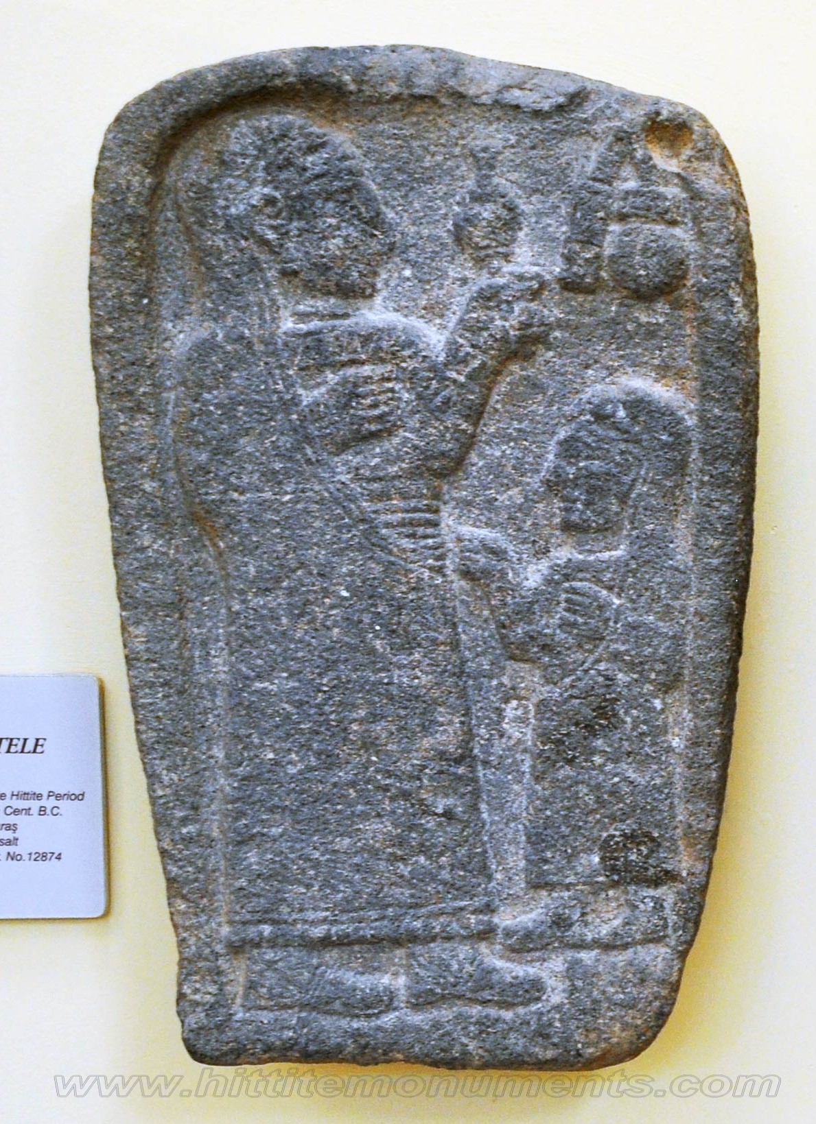 HOME - MARAŞ TÜRKÇE Stele The basalt stele was found in 1952 in Maraş and purchased by the Istanbul Archaeology Museum. It shows a relief of two female figures, perhaps a mother and her daughter. The mother is holding a spindle(?) in her left hand. It is about 61 cm high, 39 cm wide and 12 cm thick. Stylistically it may be dated roughly to the 9th century BCE. Currently on display in the Istanbul Archaeology Museum. |