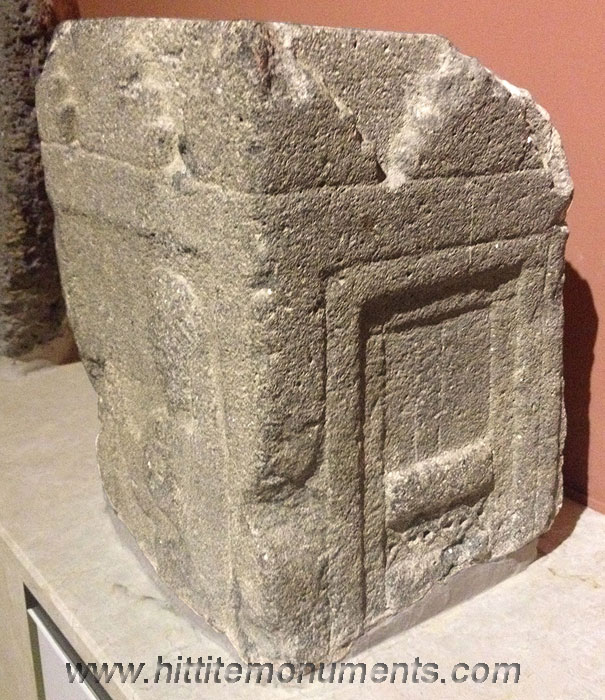 HOME - MARAŞ TÜRKÇE Funerary stele The rectangular monument has a female figure on the front side and a false-door like relief on the left side. It was brought to the museum from the city citadel. The fragment is 60 cm high and 50 cm wide. Currently on display at the Kahramanmaraş Museum. |