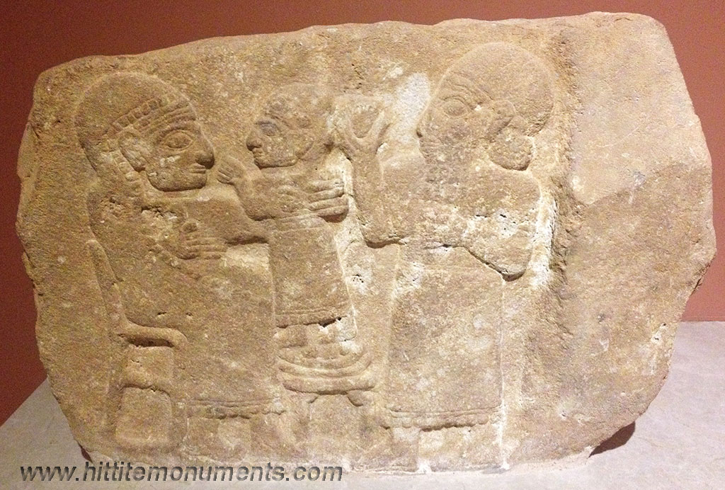HOME - MARAŞ TÜRKÇE Stele It is one of the two limestone steles that were confiscated in 1962 from a local person in Maraş, and said to have been found in the Yörükselim district of the city. It shows another typical dining scene. Between the male and female couple is a child, making it complete as a family scene. It is about 60 cm in height and 85 cm in width and may date to the 9th century BCE. The stele is currently on display at the Kahramanmaraş Museum. |