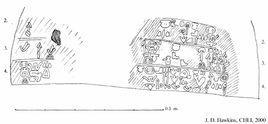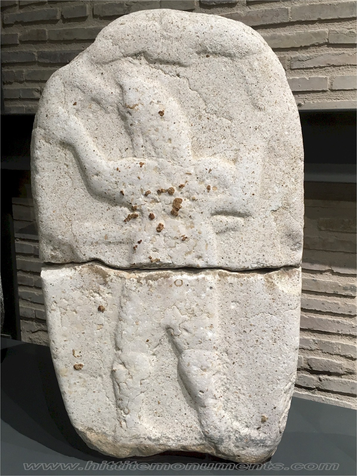 ANA SAYFA - MARAŞ ENGLISH Fırtına Tanrısı Steli Bazalt taşa işlenmiş Fırtına Tanrısı steli Maraş şehir merkezindeki ikincil lokasyonundan 1930'lu yıllarda Adana Müzesine nakledilmiştir. Oldukça aşınmış durumda olmasına rağmen ön yüzünde bir elinde savaş baltası diğer elinde yıldırım tutar pozda bir Fırtına Tanrısı kabartması görülebilmektedir. Bu figürün üstünde kanatlı güneş kursu dış hatlarıyla ayırt edilebilmektedir. Stel 1,06 metre yüksekliğinde ve 0,65 metre genişliğindedir. Arka yüzünde artık çoğu okunmaz durumda olan dört satırlık Luvi hiyeroglifi yazıtı mevcuttur. Okunabilen bir kaç kelimeden tanrılara yapılan adaklardan bahsedildiği anlaşılmaktadır. Adana Arkeoloji Müzesinde sergilenmektedir. |