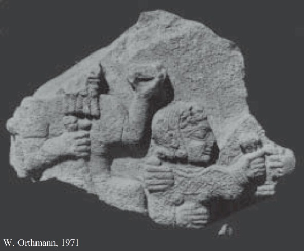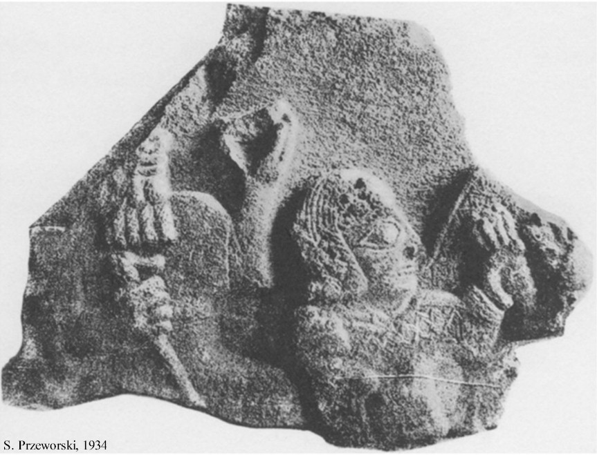 HOME - MARAŞ TÜRKÇE Stele fragment The basalt stele fragment shows on the left a partially visible, seated, bearded male figure holding a cup in one hand and a cane in the other. In front of him is a young girl(?). Her shoulder is held by an arm that apparently belongs to a broken-off figure originally seated across. The fragment is about 24 cm high and 42 cm wide. It was reportedly acquired in Maraş in the 1880s by Col. Lundqvist, who was an attaché in the Russian consulate in Aleppo and subsequently transferred to Tbilisi, Georgia. It is currently in the Simon Janashia Museum of Georgia. |