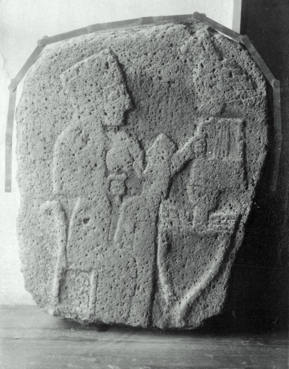 HOME - MARAŞ TÜRKÇE Stele The basalt stele shows a seated woman holding a mirror in her right hand and a lyre in her out streched left hand, with a bird perched on the lyre. There is a smaller female, perhaps a child, on her lap. The stele is 56 cm high and 50 cm wide. Stylistically, it may date to around 950-875 BCE. There is no information about the find place, but the stele must have been found in the city of Maraş. In the 1880s it came into the possession of the American mission in Maraş. In 1891 it was acquired by the New York Metropolitan Museum from Rev. William H. Ward. |