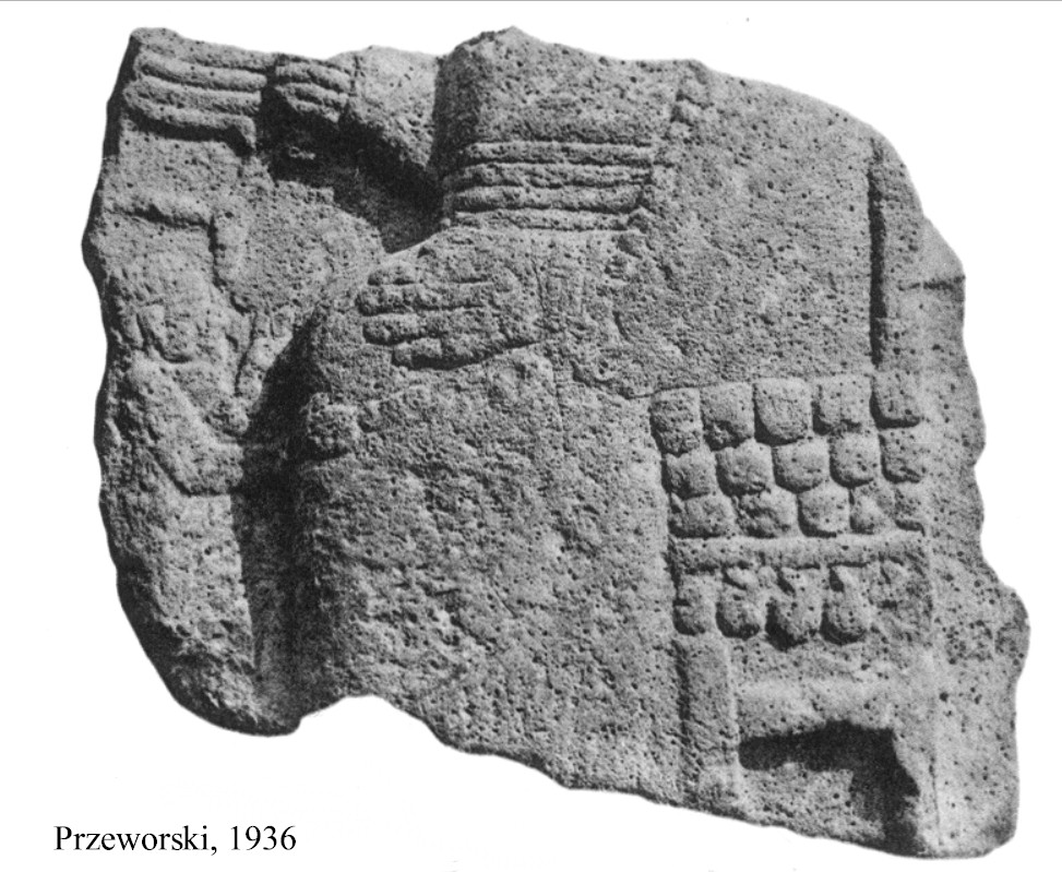 HOME - MARAŞ TÜRKÇE Dinner scene fragment The basalt, or perhaps granite, fragment belongs to another dining scene. A seated female is visible from chest down to the ankles wearing a fringed garment. In front of him is a small boy. The fragment is 44 cm high and 45 cm wide. A date in the 8th century BCE has been suggested. It is in the inventory of the Istanbul Archaeology Museum. |