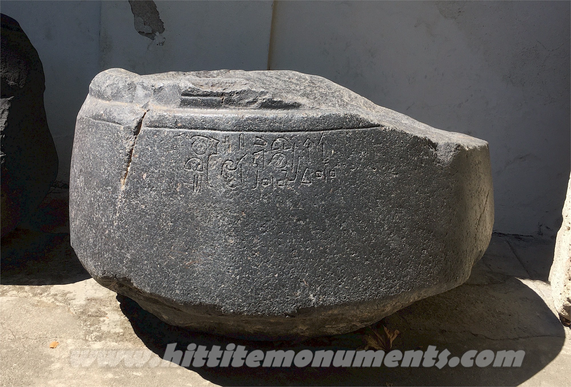The round stone base was excavated from the foundations of a house in Niğde in 1906. The short Hieroglyphic Luwian inscription on it reads, "This stone Saruwani made (as) his statue" (J. D. Hawkins). It is possible that this was a base for a statue. Saruwani must be a ruler of Nahitiya (Niğde), and he is also the author of Andaval. It is dated to the early 8th century BCE and is currently at the Istanbul Ancient Orient Museum.