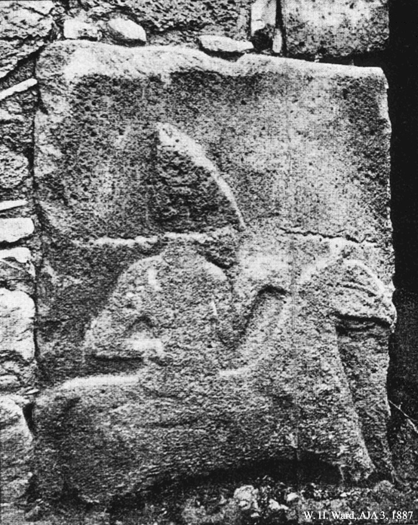 HOME - ZİNCİRLİ TÜRKÇE Orthostat with a horse rider The basalt (dolerite) orthostat was found in 1888 on the western slope of the Zincirli mound as used in the wall of a house that was built a few years earlier. It is about 120 cm high, 70 cm wide, and 12 cm thick. It bears the relief of a horse rider with a round cap. It is believed to have originated from the inner side of the Southern City Gate, where similarly sized steles, including another horse rider, were found. It is currently in the Vorderasiatisches Museum in Berlin.