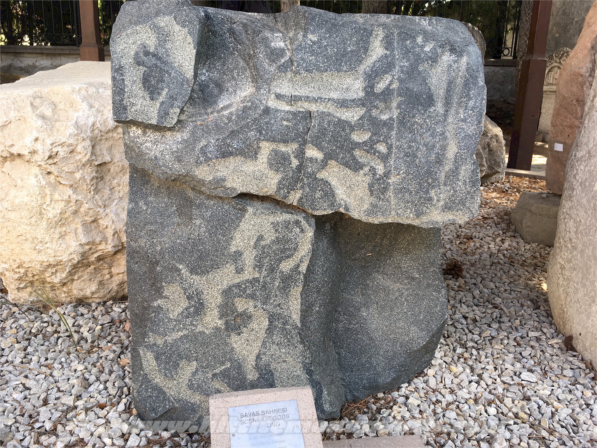Boğazköy (Hattuša) Great Temple It is the largest of over 30 temples found in the city and was probably dedicated mainly to the top two deities of the Hittite pantheon, the Storm-god of Hatti and the Sun-goddess of Arinna, whose statues must once have been placed in the two northern rooms of the inner temple building. The main temple building was surrounded by numerous rooms of administrative and utility facilities. Today only the stone foundations are visible. The walls above those were made of mud brick and wood. Around the Great Temple: City Walls, Lion Basin, and Quellgrotte (Fountain-Cave) In 2003-2005 a section of the city walls was reconstructed using original methods and materials to give visitors an idea about how it once looked. The remains of a stone basin, decorated with four crouching lions on each corner, were found a little south of the main gate of the temple complex. It was carved from a single 5.5 m long limestone block. Whether it served as a water basin or base for another monument remains unclear. To the south of the temple complex is a small grotto, the so-called Quellgrotto, with steps descending into a stone doorway. Inside is a water spring. The lintel above its door is a replica of the original in the Boğazkale Museum, which bears worn-out reliefs of human figures. A nearby-found inscribed stele (BOĞAZKÖY 12) may suggest that the spring had cultic significance. Büyükkale, Nişantepe and Nişantaş Büyükkale is the hill where the palace complex was located. Today only the stone foundations of the vast building complex are visible. To the southwest of Büyükkale, the small hill across the modern-day road is called Nişantepe, where several sculpted works had been found. On the rocky hillside facing Büyükkale is the large inscribed monument of the last king of the Hittite Empire called Nişantaş (BOĞAZKÖY 5). Sacred pool complex chambers Two domed chambers were built into the western (Chamber I) and northern (Chamber II) corners of the embankments of the water reservoir called Eastern Ponds. The better-preserved Chamber II has two reliefs, one on the wall across the entrance and another on the left wall, both probably representing the Hittite king Suppiluliuma II, whose name is written (BOĞAZKÖY 20) next to the relief on the left. On the right is a lengthy inscription of the same king (BOĞAZKÖY 21), which relates his successful military campaigns. King's Gate and Lion Gate King's Gate and Lion Gate are two of the entryways of the city located on the eastern and western sides of the walls, respectively. A high relief of a male warrior figure is carved on a limestone block at the north flank of the inner doorway of the King's Gate. In early years, the relief was thought to be of a king, after which the gate was named. However, the horns on the headpiece and naked feet suggest that the figure represents a god. The relief is about 2.35 meters high. The original relief has been cut off and moved to the Ankara Museum, and a replica was installed in its place. The Lion Gate gets its name from the pair of lions guarding the outer doorway of the gate. The broken head of the left-hand lion has been replicated from its counterpart. Upper Town The southern part of the city is called Upper Town due to its higher elevation. It is mostly covered with the foundations of numerous temples. Yerkapı, the Sphinx Gate, and the Postern Tunnel The high ramparts that cover the southern section of the city walls are referred to as Yerkapı. At the top of the walls is the so-called Sphinx gate on account of the two pairs of sphinx statues that flank its inner and outer doorways. Both sphinxes of the inner-facing doorway are made of a reddish limestone and have been found in heavily fragmented condition. The east flank sphinx shown below was originally taken to Berlin for repairs and had been on display in the Pergamon Museum until 2012, when it was returned to Turkey. The west side sphinx had also been moved to the Istanbul Museum. Today the originals of both sphinxes are in the Boğazkale Museum, and replicas are installed at their original locations. At the outer-facing doorway, only the west side sphinx survives, albeit heavily damaged. Below the ramparts is a 71 m long and 3 m high postern tunnel that provides a shortcut in and out of the city. In 2022 numerous hieroglyphic characters painted on the tunnel blocks (BOĞAZKÖY 28) have been discovered. Hieroglyphic inscriptions
