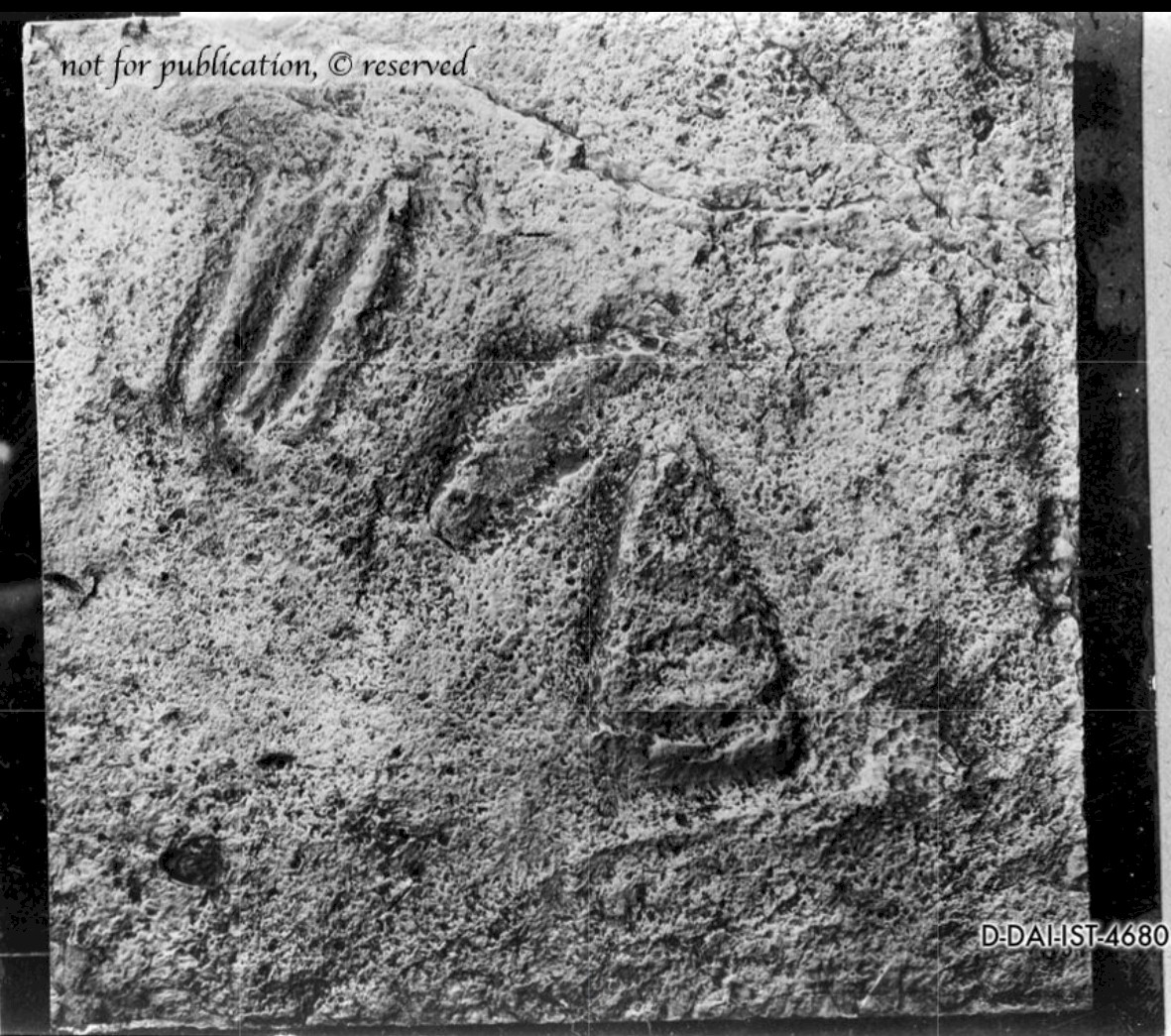HOME - ALACAHÖYÜK TÜRKÇE ALACAHÖYÜK 2 The basalt fragment was found in 1893 near the South Gate of Alacahöyük by E. Chantre during his research at the site. It was probably part of a longer inscription. Subsequently, the fragment must have been damaged further, as until recently a piece of it that included the "city" (URU) sign was still visible at the site (see image below). A cast of the fragment is in the inventory of the Anatolian Civilizations Museum in Ankara. |